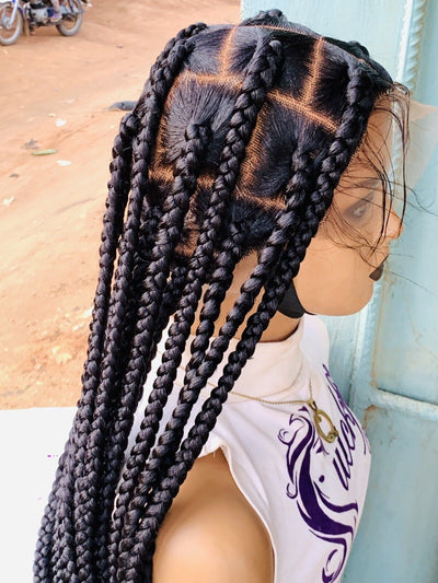 Large Knotless Braids On Full Lace Wig, Braided Wig, Box Braids, Synthetic Hair,