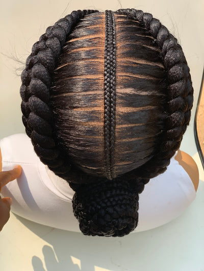 Ponytail Afro Bun Braided Wig Box braids Full lace braids wig Senegalese Black Women