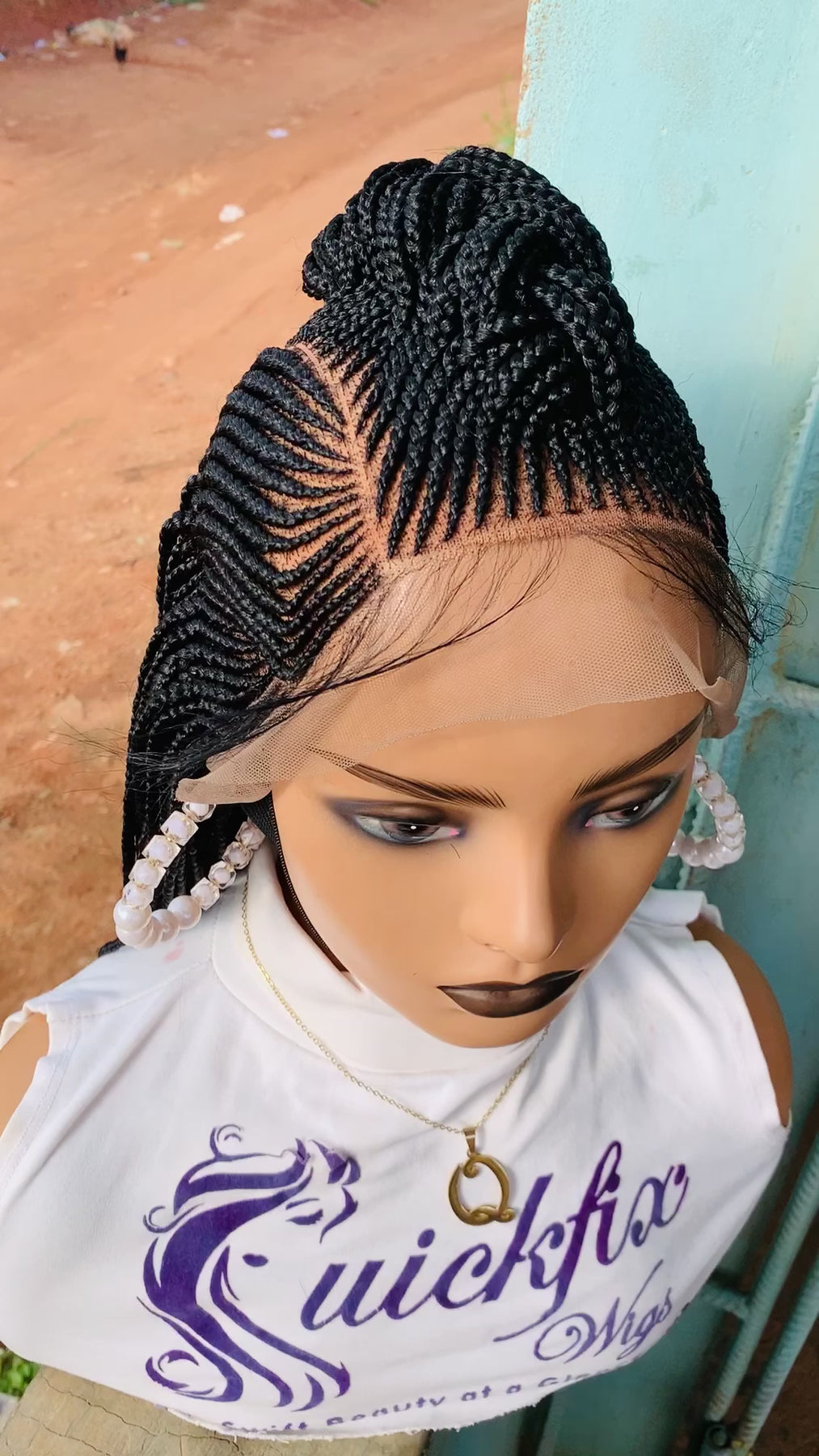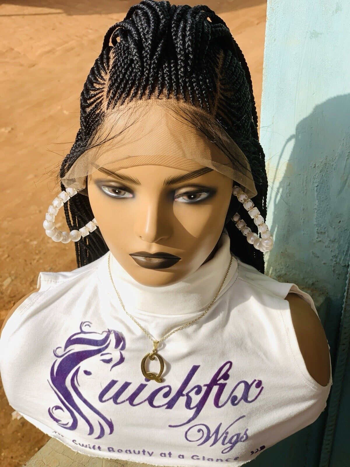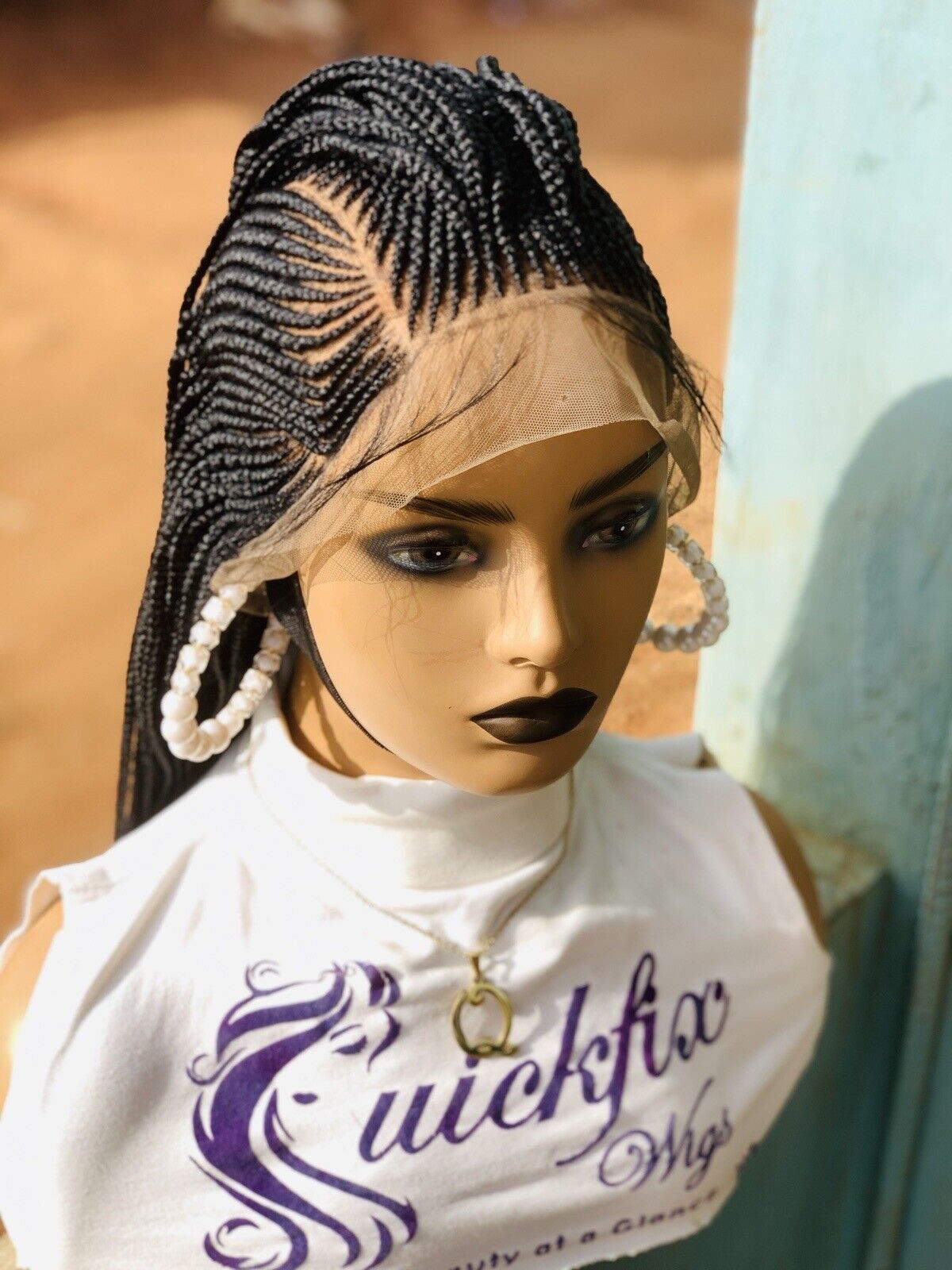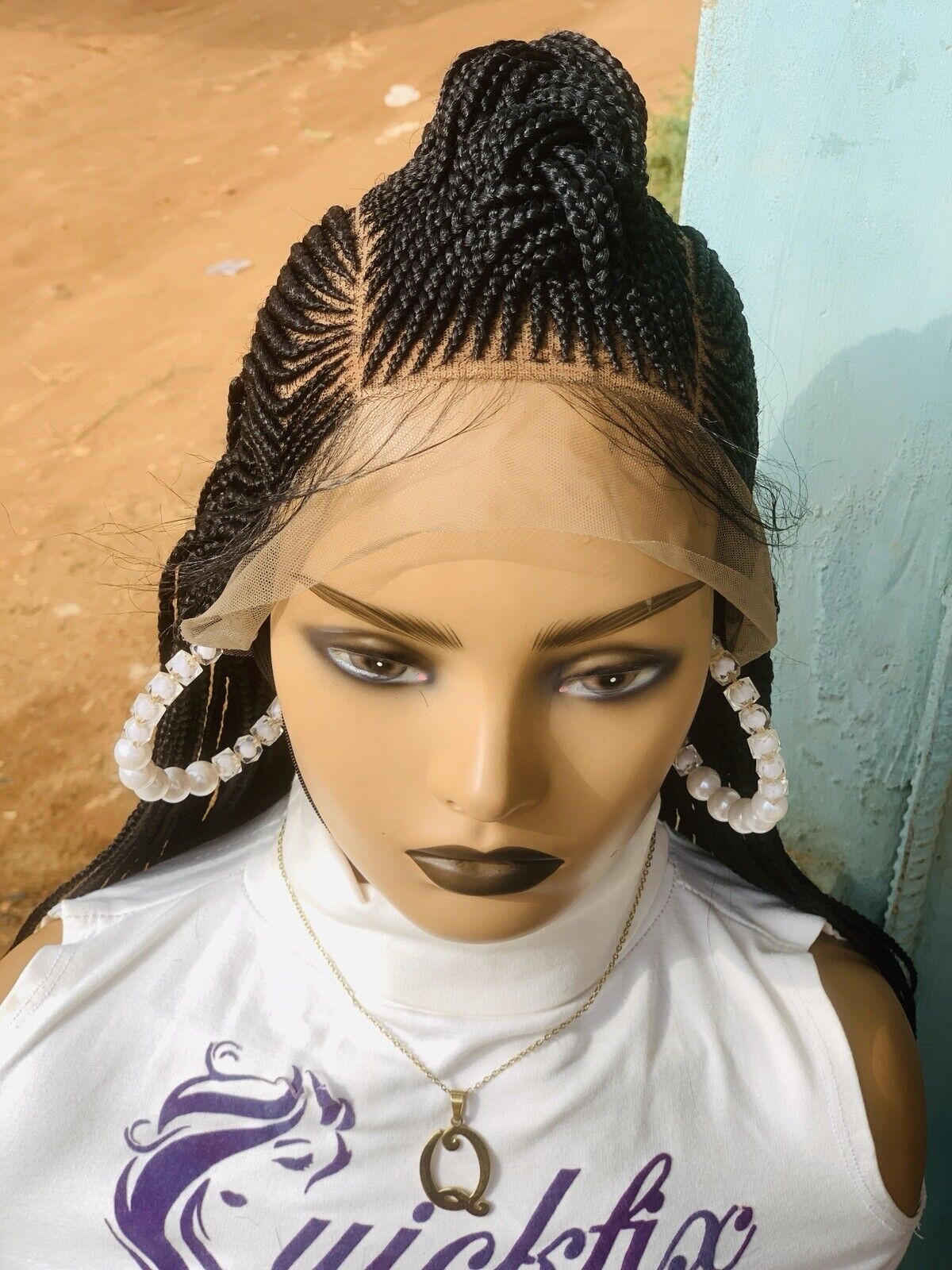 Braided Wig, Black Women Wig, Full Lace, Cornrow, Synthetic, Human Hair, Knotles