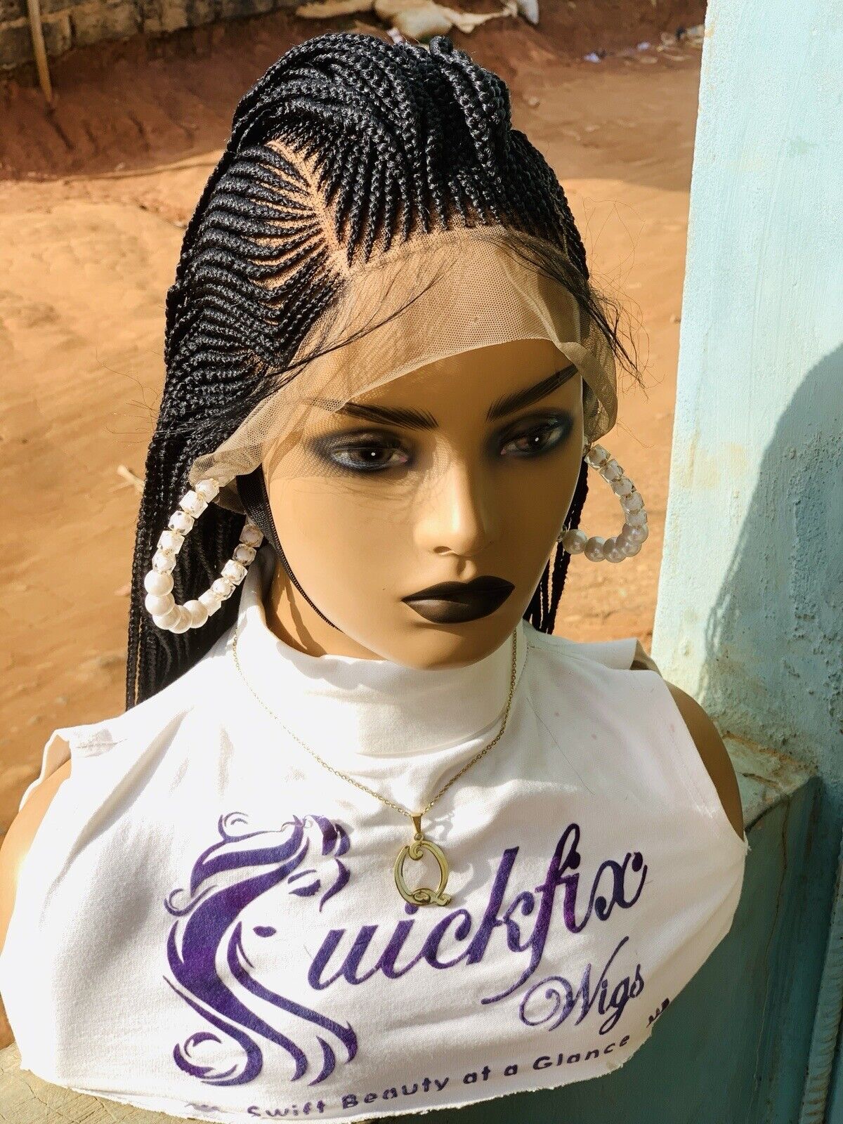 Braided Wig, Black Women Wig, Full Lace, Cornrow, Synthetic, Human Hair, Knotless