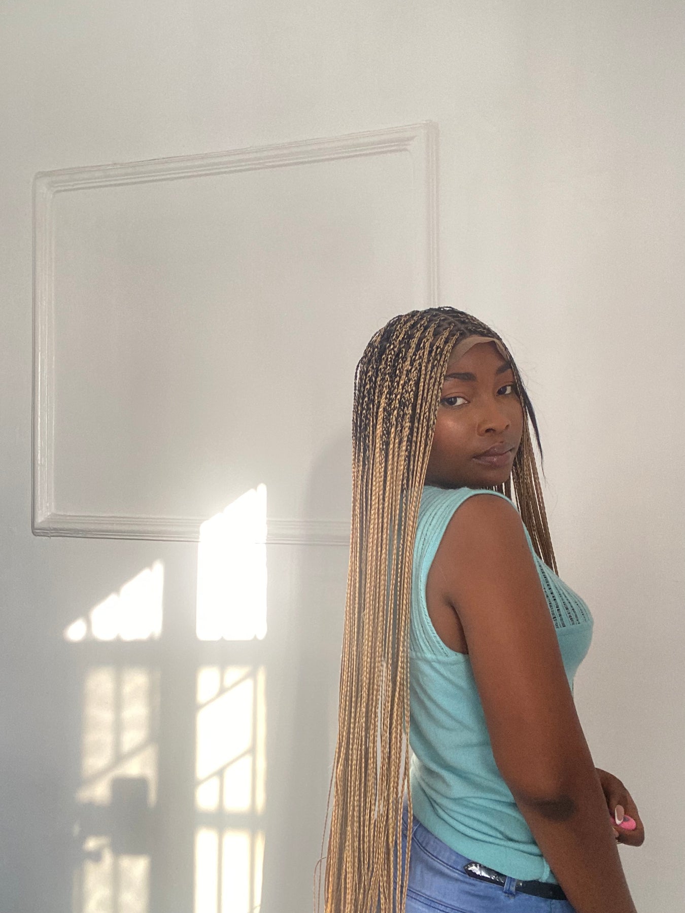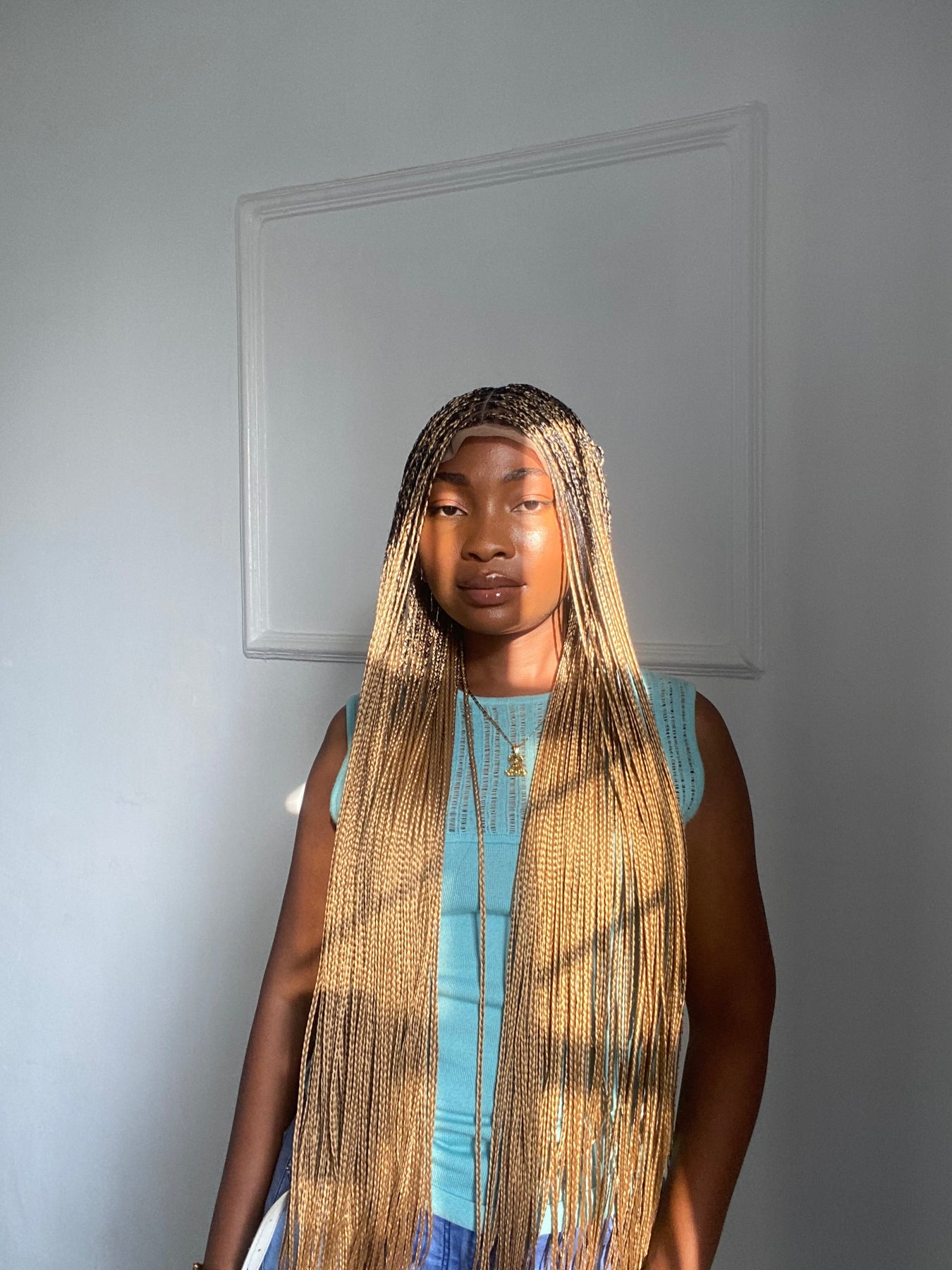 Bone Straight Braids On Full Lace Wig.