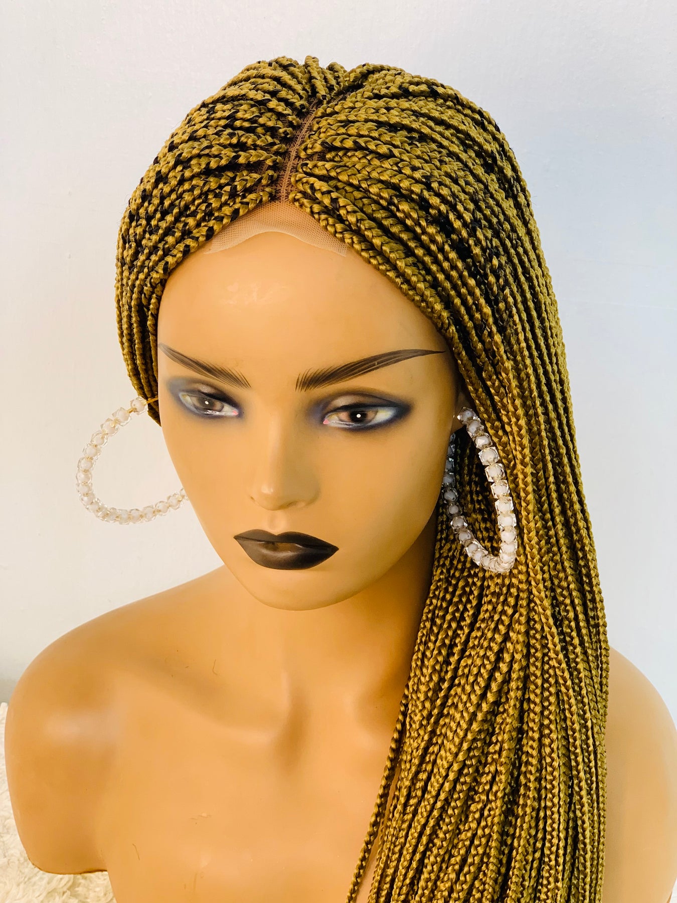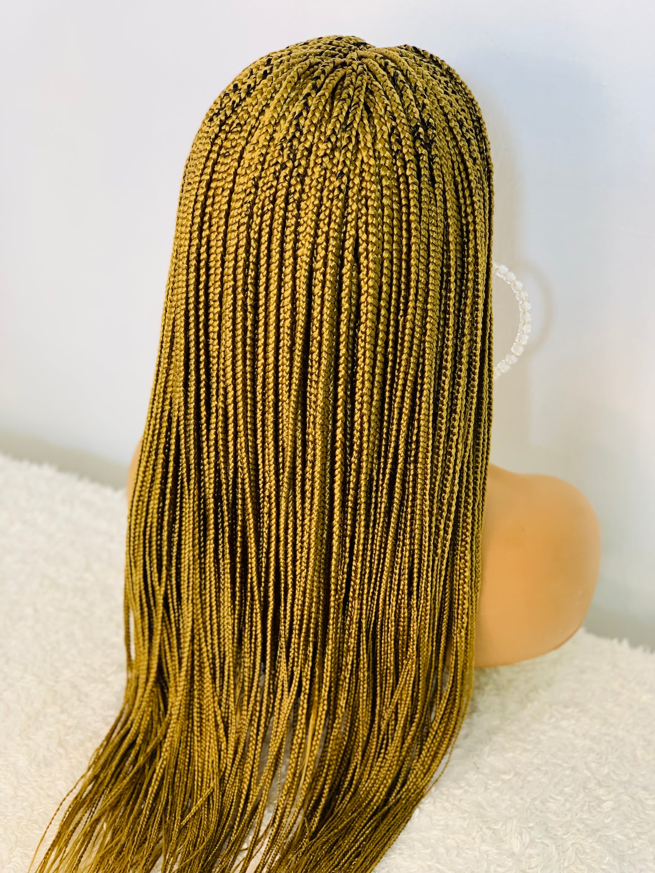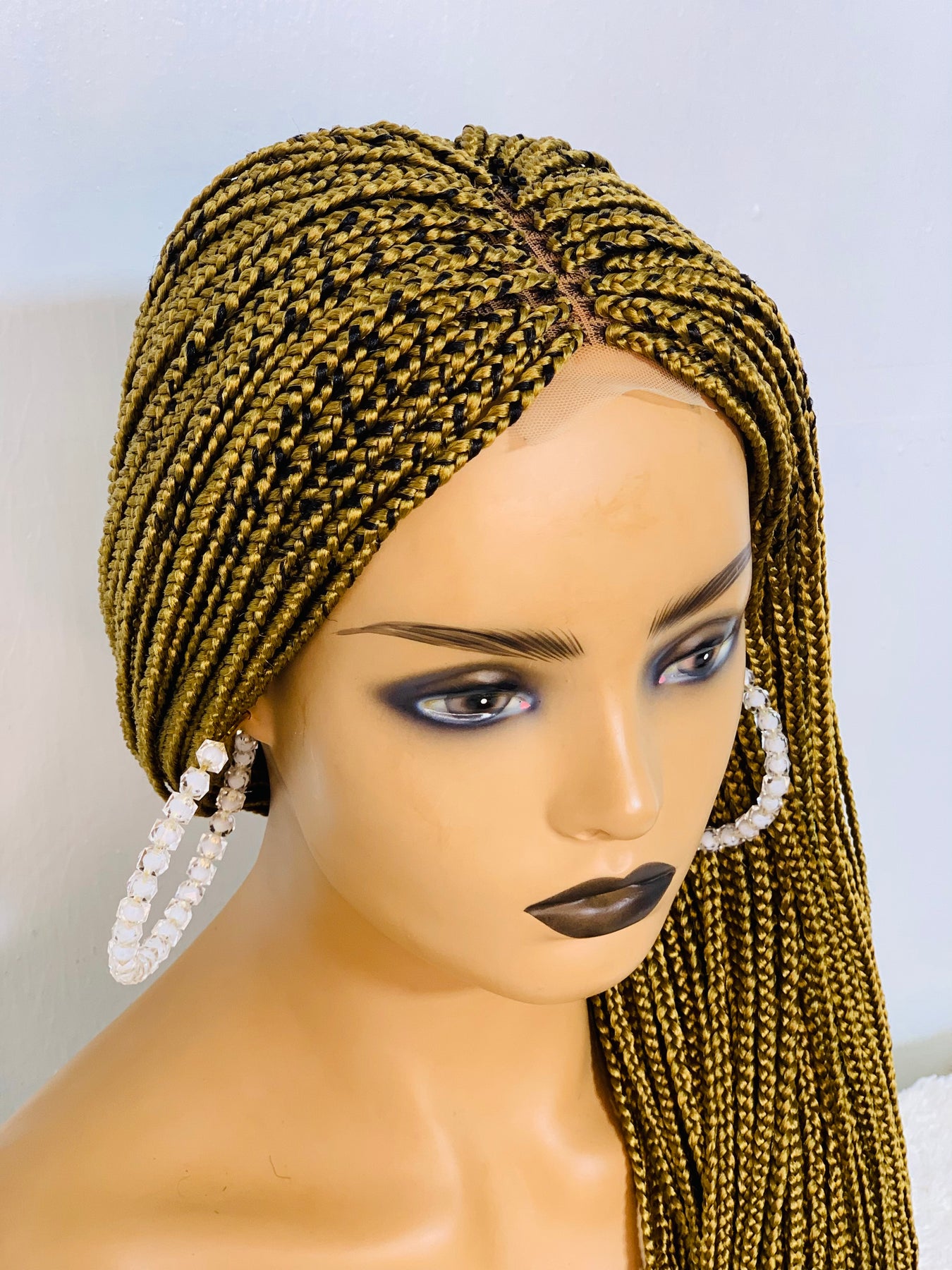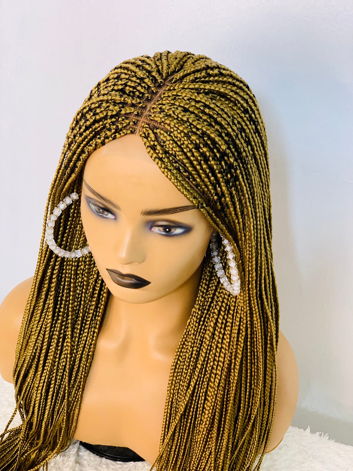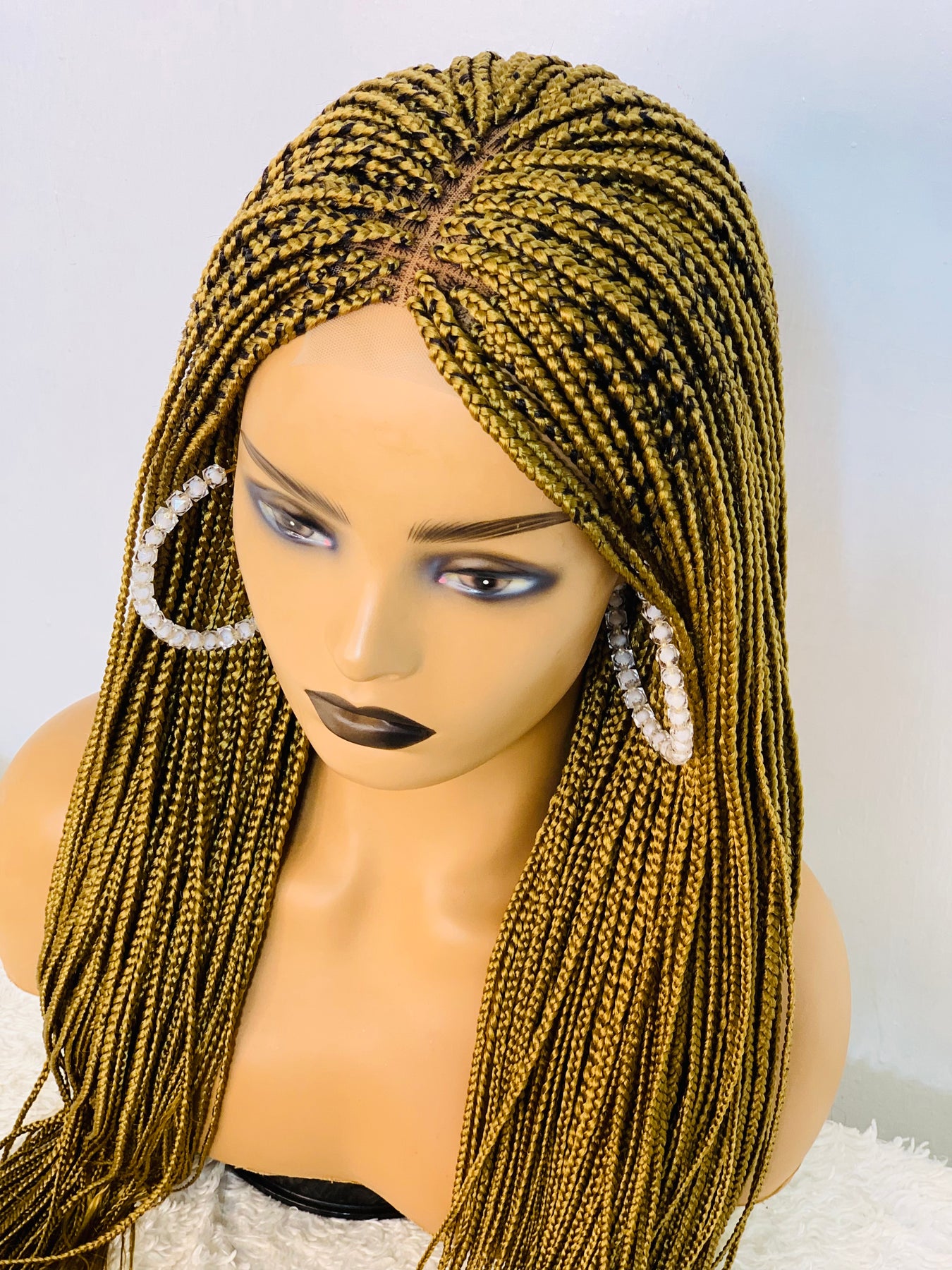 Small box braids on 2*4 lace closure wig as shown in picture.