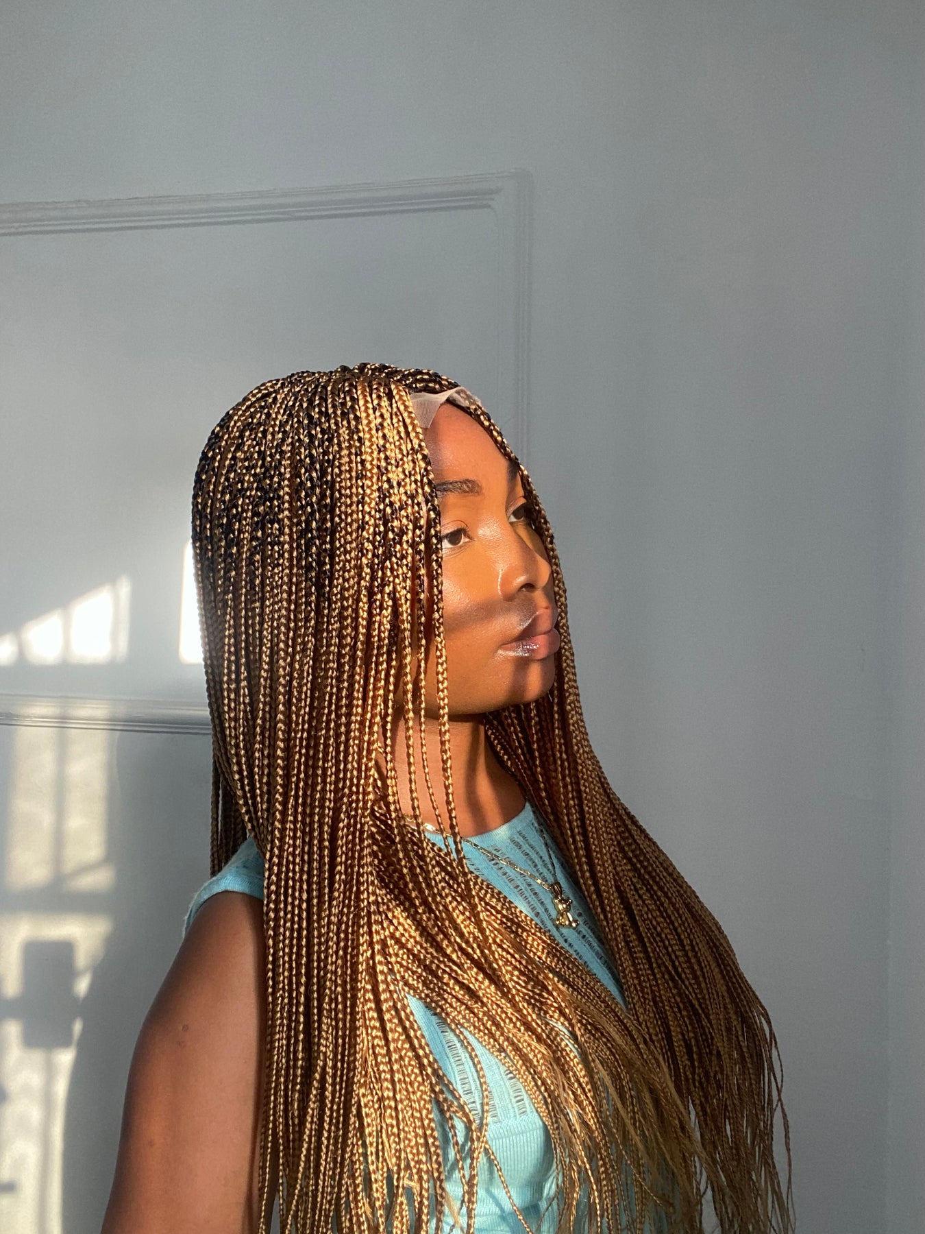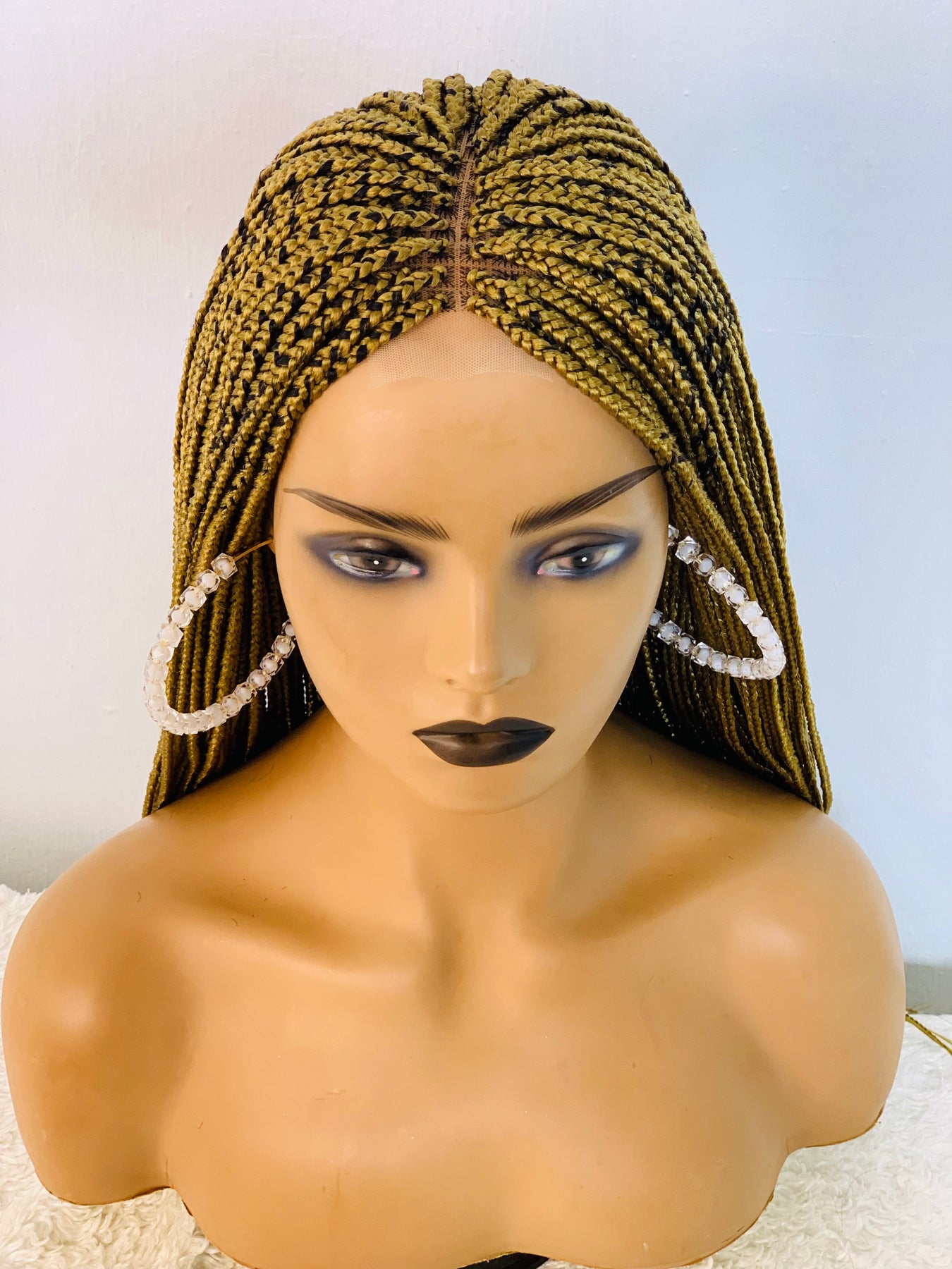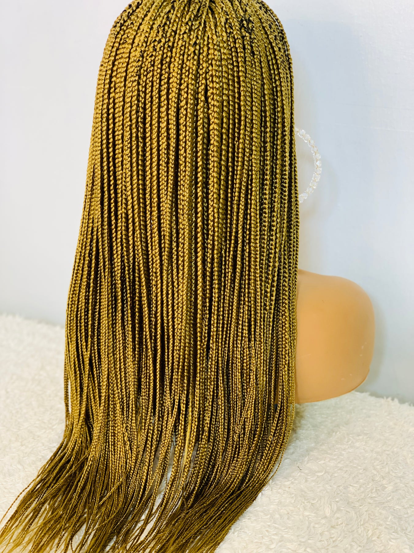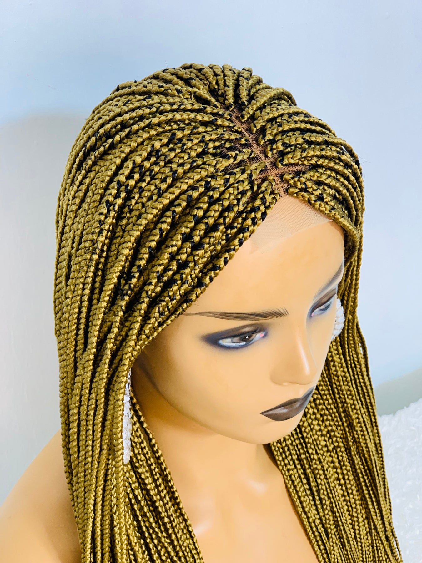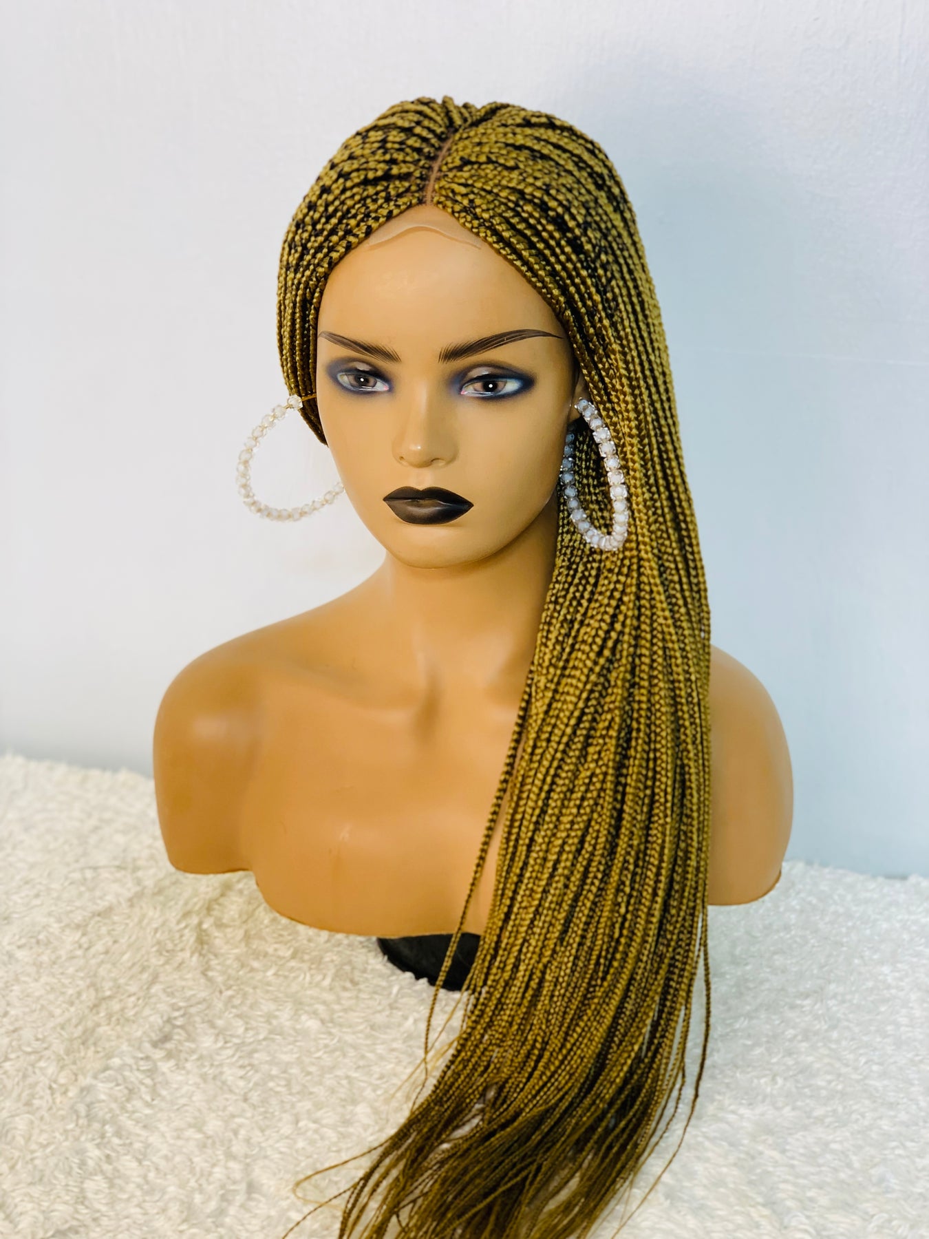 Small box braids on 2*4 lace closure wig as shown in picture.