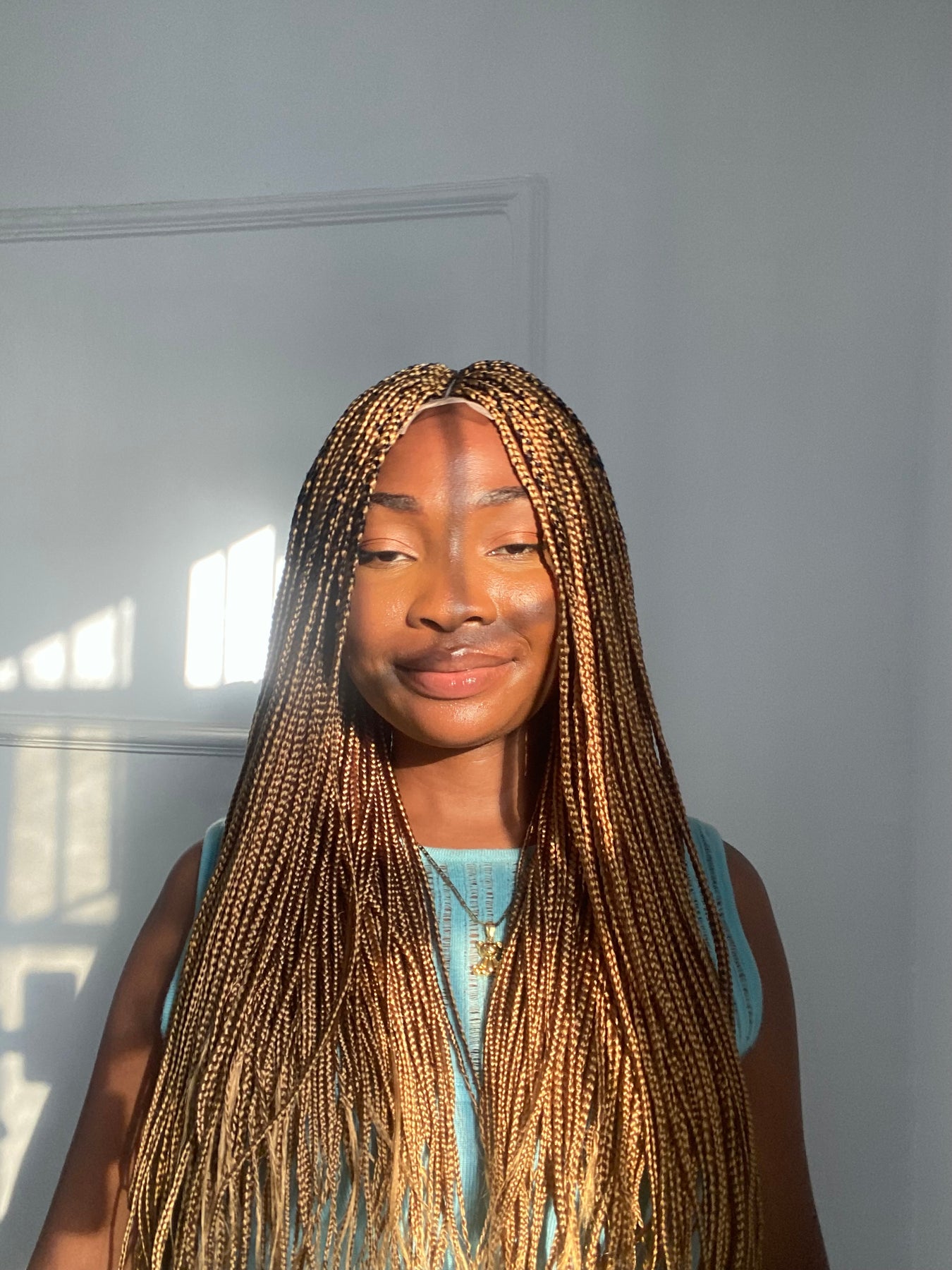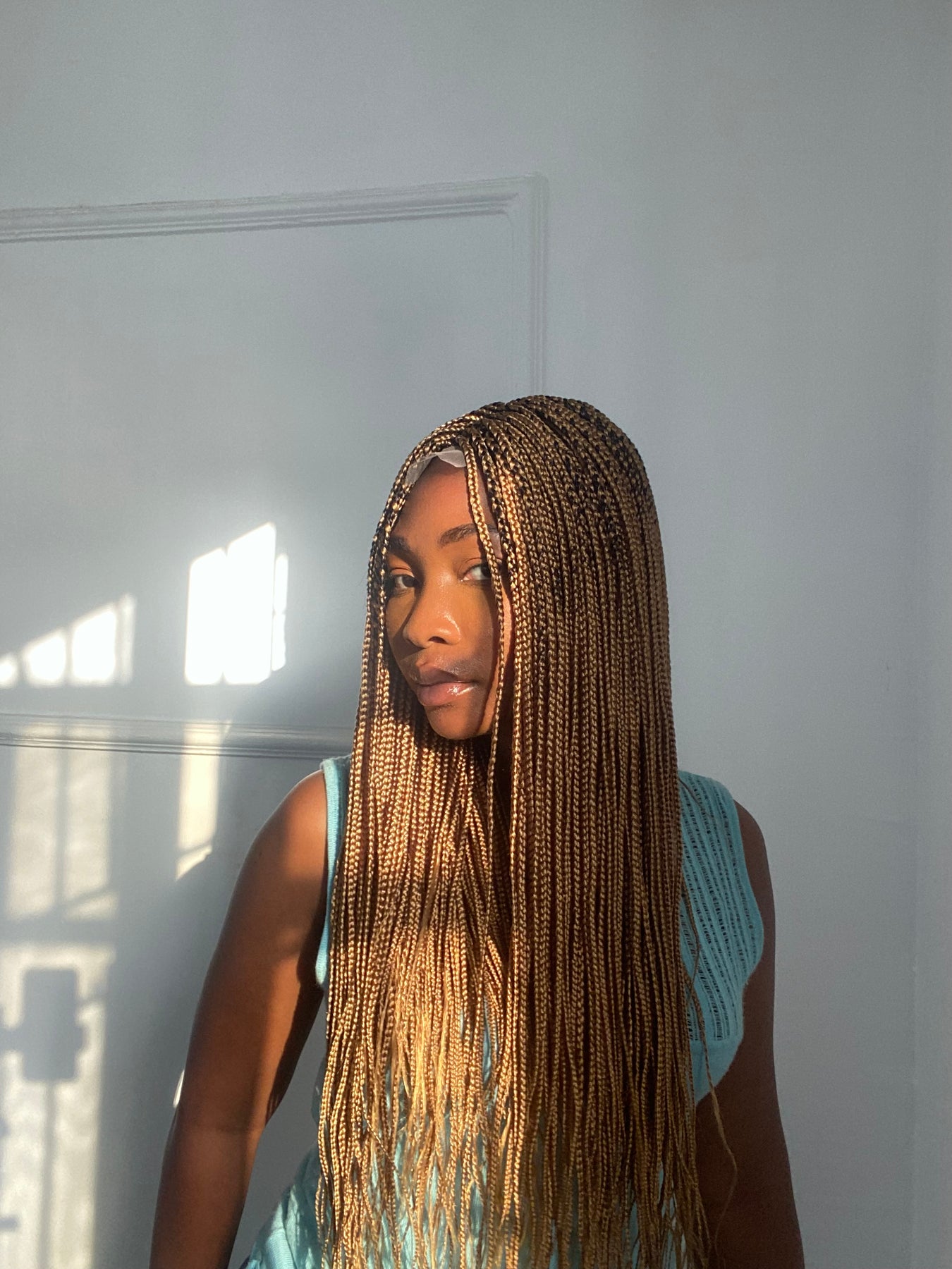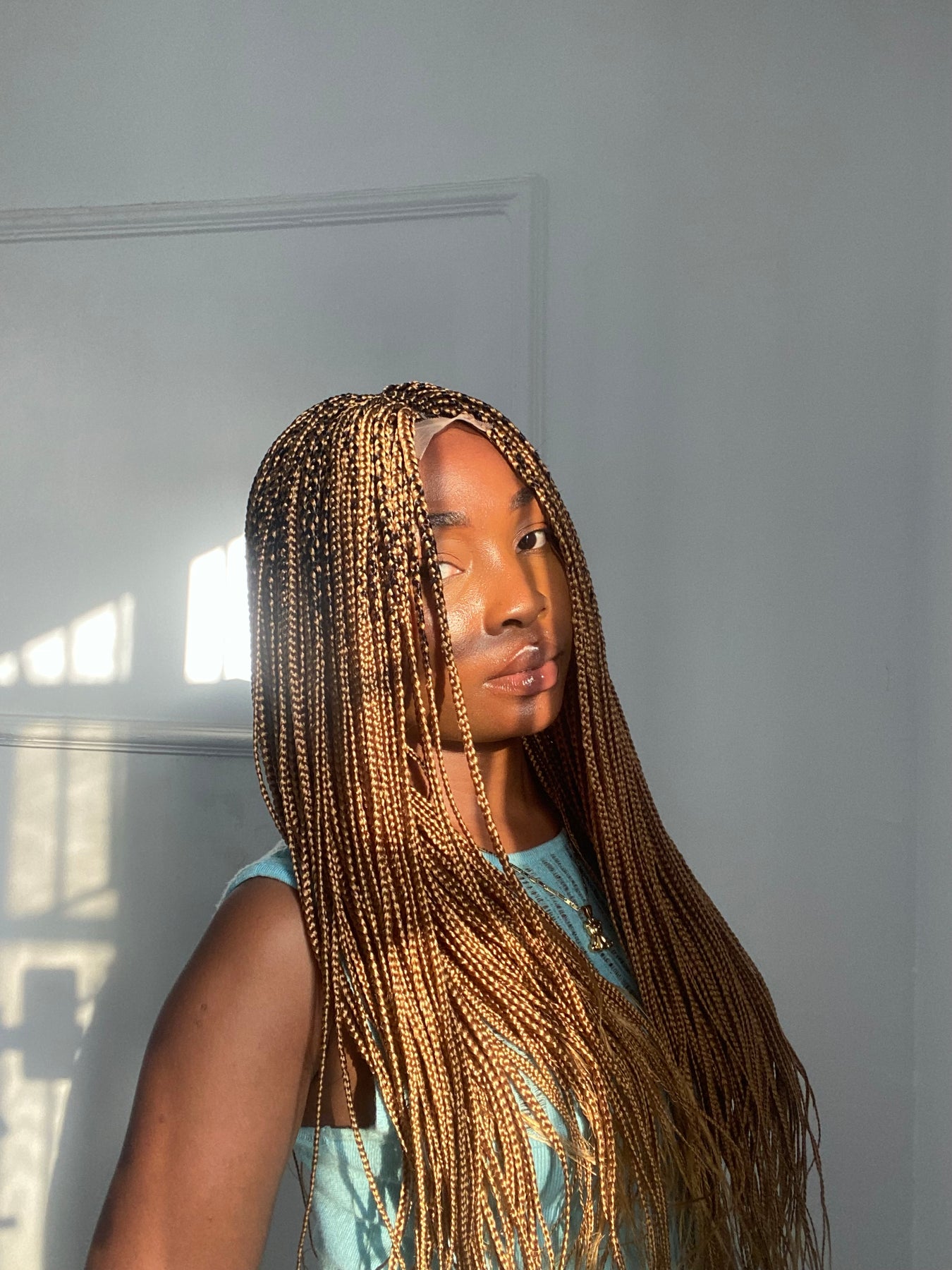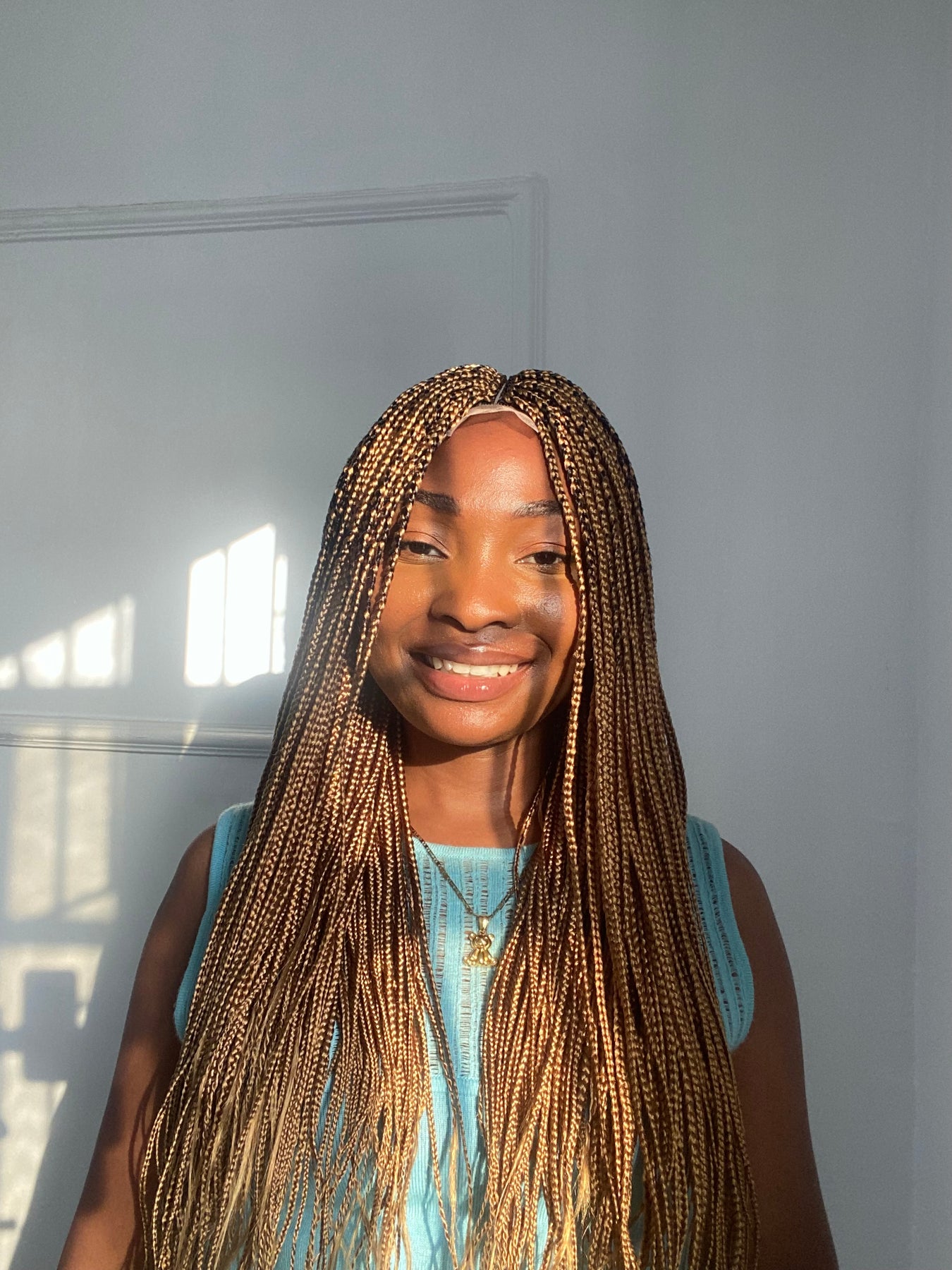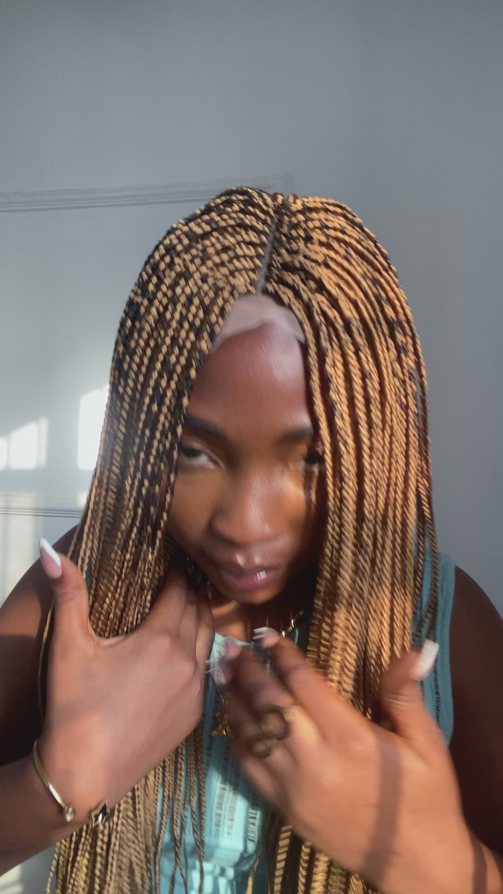 Small box braids on 2*4 lace closure wig as shown in picture.