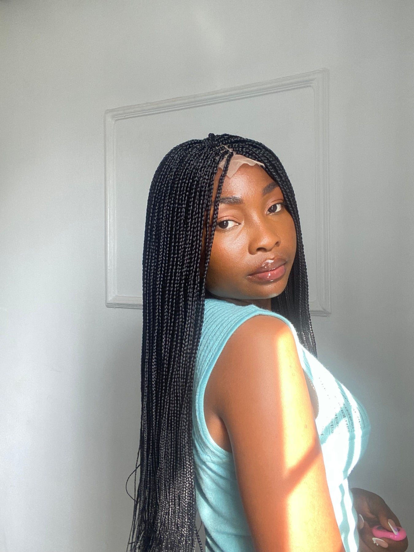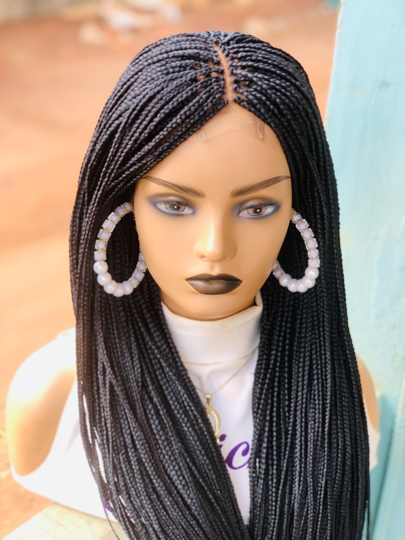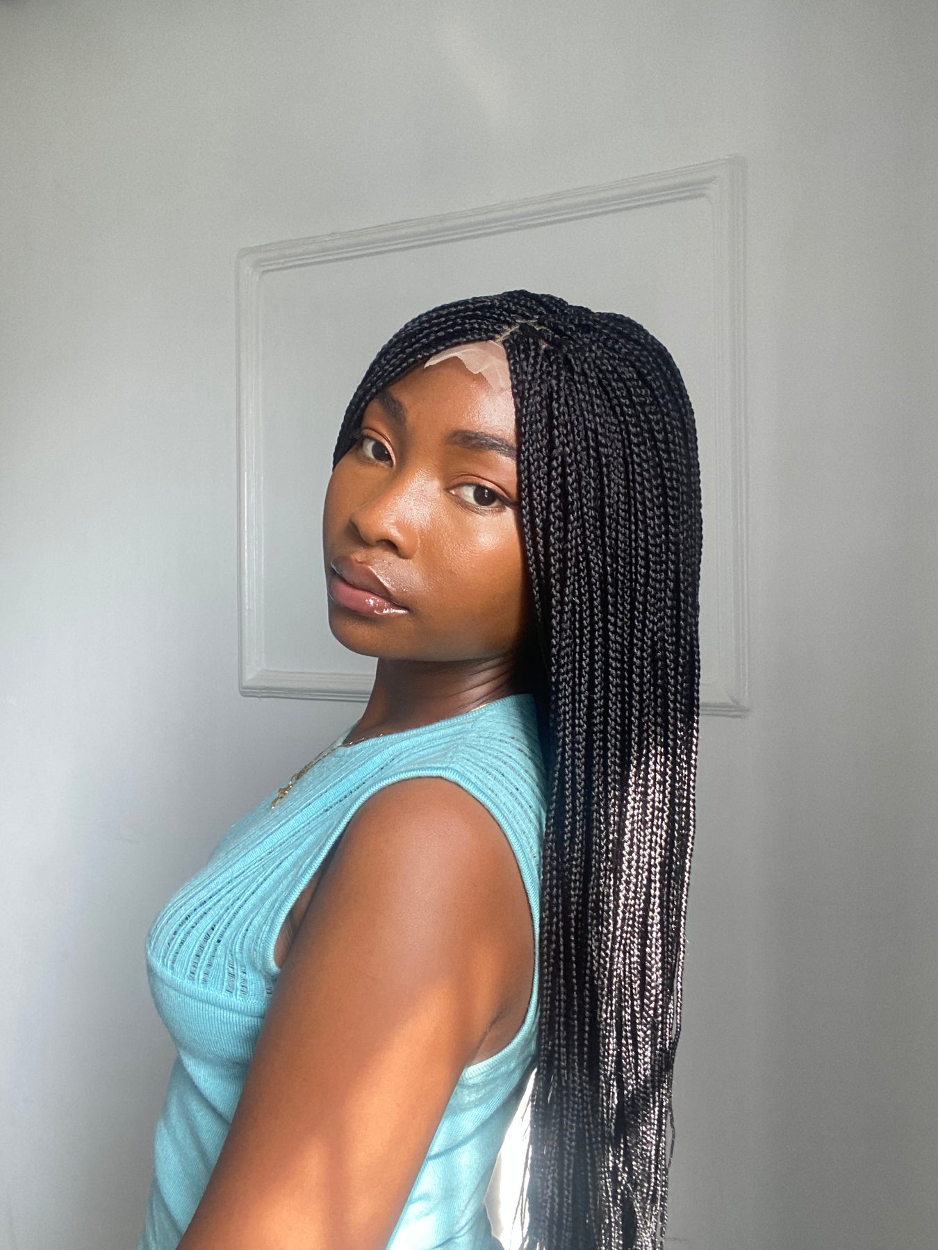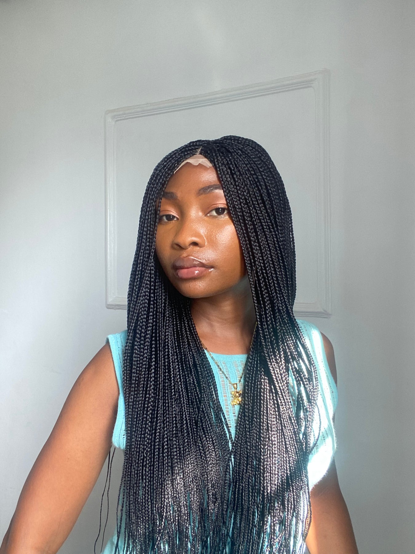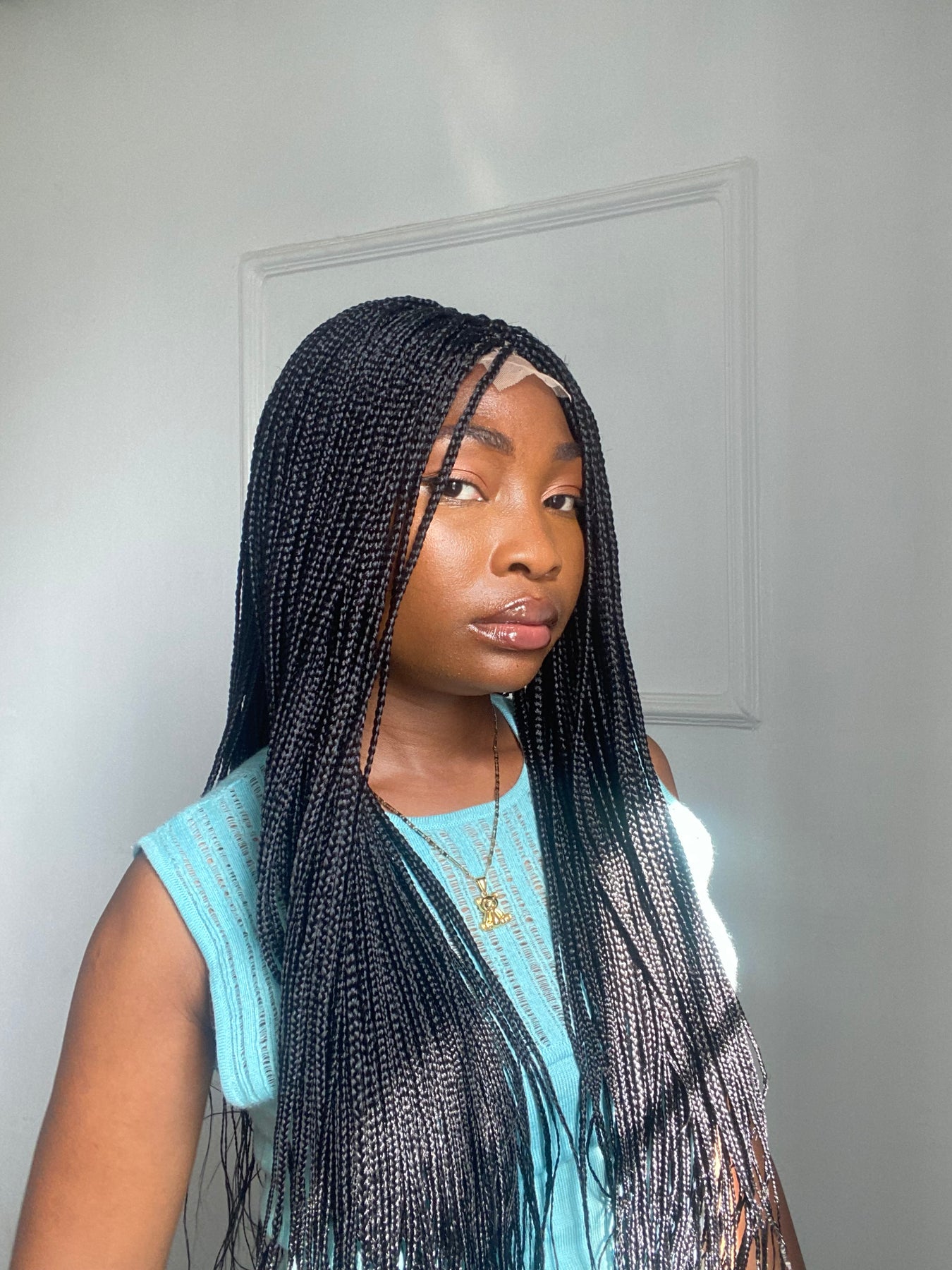 Small box Braids On 2*4 lace closure Wig, Braided Wig, Box Braids, Synthetic Hair,.